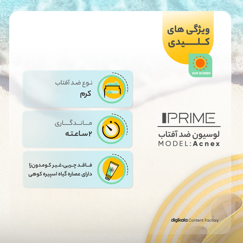 کرم ضدآفتاب رنگی پرایم مدل Acnex SPF60، مناسب پوستهای چرب، حجم 40 میلیلیتر