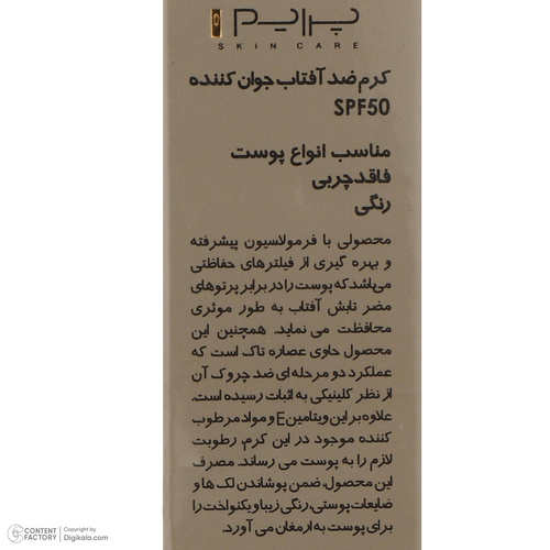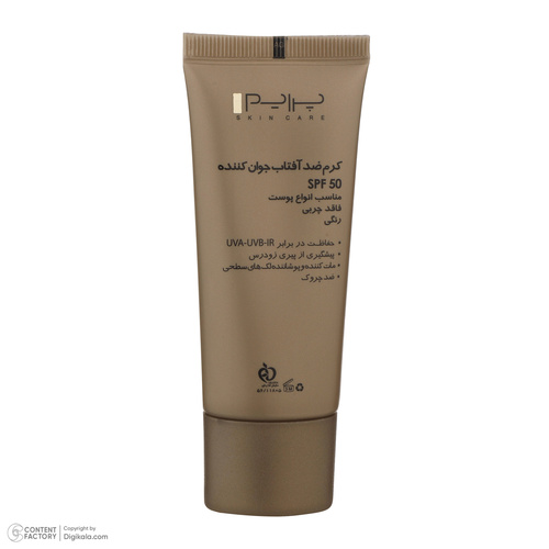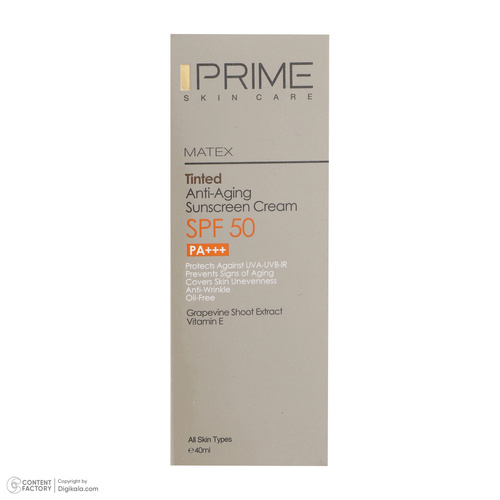 برای رفع لکهای صورت، جلوگیری از افزایش لکها و حتی در برخی موارد تغییر رنگ پوست، کرمهای جداگانهای تهیه شده است اما شرکت «پرایم» (Prime) کرم ضدآفتابی را طراحی کرده است که این 3 ویژگی را باهم دارد. این کرم از نوع کرم پودری است بدین معنی که با قراردادن آن روی پوست، رنگ آن بهرنگ بژ درمیآید. این محصول میتواند از پوست دربرابر اشعههای UVA، UVB و IR از پوست محافظت کند. این اشعهها موجب پیری، شکنندگی و انواع بیماریها برای پوست میشوند. هرچند که کرمهای مختلف برای پوستهای مختلف بهطور جداگانه طراحی شدهاند اما این کرم برای انواع پوستها قابل استفاده است. این کرم حاوی عصاره انگور است. مواد استفاده شده در این کرم مانع از چروک پوست میشود و آن را بهخوبی مرطوب میکند. جذب سریع این کرم آرایشی از دیگر ویژگیهای این کالا است که آن را برای استفاده بهعنوان یک پایه آرایشی مناسب میسازد. عصاره تاک در نظر گرفته شده در این کرم میتواند به عنوان جوانکننده پوست استفاده شود. SPF مادهای است که میزان آن میتواند بهعنوان مقدار محافظت کنندگی کرم دربرابر آفتاب درنظر گرفته شود. SPF این کرم 50 است بنابراین از آن میتوان در فصول تابستان که تابش آفتاب زیاد است استفاده کرد. این کرم سرشار از ویتامین E با خواص آنتی اکسیدانی قوی است.