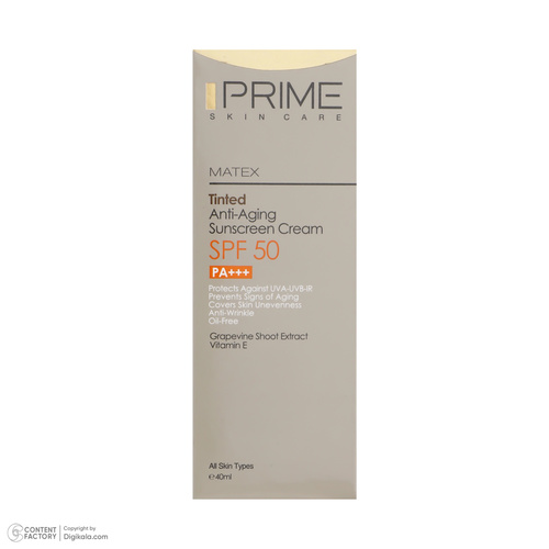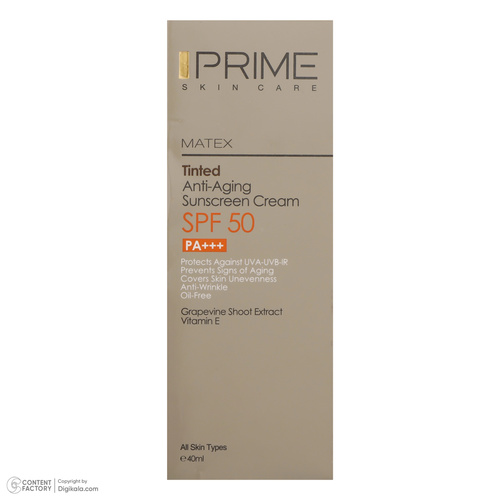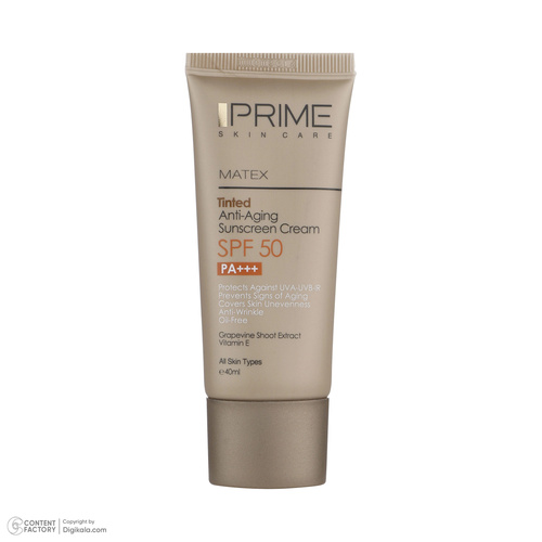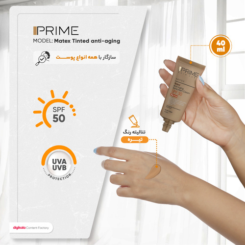 کرم ضدآفتاب رنگی پرایم SPF50 مدل Matex Tinted Rejuvinating مناسب انواع پوست، حجم 40 میلیلیتر