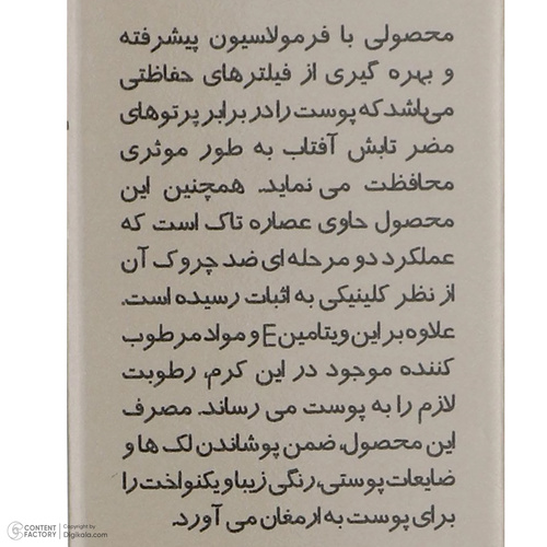 راهنمای استفاده20 دقیقه قبل از قرار گرفتن در معرض آفتاب، نواحی از پوست خود را که در تماس با نور آفتاب است، با مقدار کافی از کرم بپوشانید.