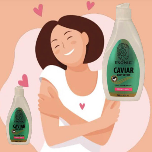 بسیاری از ما خشکی پوست خصوصا پس از استحمام را تجربه کرده ایم، لوسیون بدن خاویار Exonic با دارا بودن ویتامین A,B,D,E,C و آنتی اکسیدان های فراوان و امگا 3 باعث لطافت و نرمی پوست شده و با تحریک کلاژن سازی و افزایش خاصیت الاستیسیته پوست روند پیری و ایجاد چروکهای پوستی را به تعویق می اندازد.