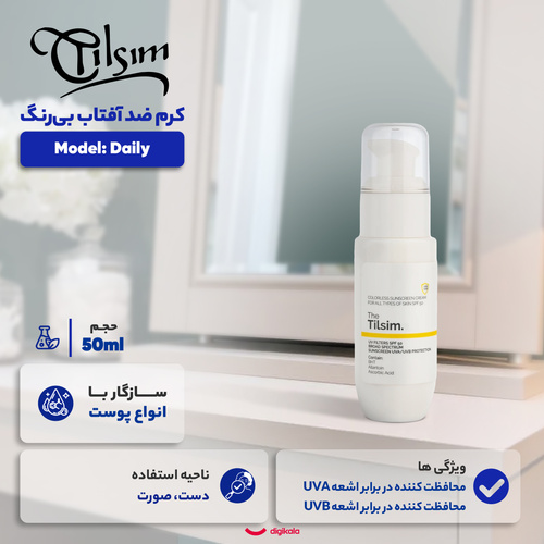 کرم ضد آفتاب بیرنگ تیلسیم SPF 50 مدل Daily محافظ UVA،UBA مناسب برای انواع پوست حجم 50 میلی لیتر
