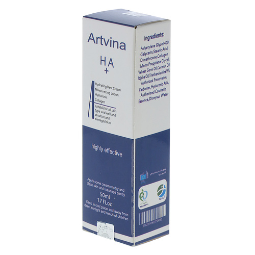 لوسیون آبرسان و طراوت دهنده هیالورنیک آرت وینا فرمول شده با استانداردهای کمسیون اروپا میباشد و هم برای بدن و هم برای صورت کاربرد دارد با خاصیت مرطوب کنندگی و کاهش چین و چروک به جوانسازی پوست کمک می کند.این لوسیون ضمن فراهم آوری رطوبت مورد نیاز لایه های پوست، از تبخیر آب از سطح پوست جلوگیری کرده و پوست را شاداب ، لطیف و نرم می نماید . عصاره ها و روغن های موجود در این کرم یک عامل شاداب کننده و مرطوب کننده طبیعی به شمار می رود که سرشار از مواد مغذی مختلف است لوسیون آرت وینا به سرعت بر روی پوستتان تاثیر به سزایی می گذارد و خواص آن را می توانید به چشم مشاهده کنید. استفاده مرتب از این لوسیون بدن سبب می شود تا رطوبت در پوست ماندگار شده و خشکی پوست بعد از حمام کاهش یابد. لوسیون آرت وینا حس زیبایی و جوان ماندن ظاهر پوست را به شما می دهد. این لوسیون دارای جذب بسیار بالا می باشد و حس سنگینی به پوست نمی دهد و به تغذیه پوست کمک می کند.